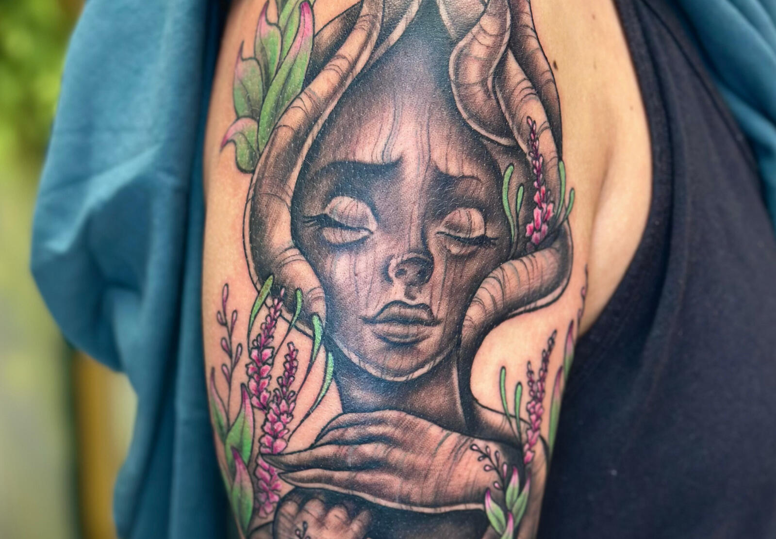 Santi is a Chilean, queer, and trans artist who finds inspiration in the beauty and magic around and within them.Santi has been doing art as long as they can remember. She started her tattooing journey in 2018 in Elmore County, Idaho. They quickly fell in love with the medium and decided to migrate to the PNW in search of more opportunities for growth and celebrating their art.That search and attraction of growth brought Santiago to open Muse Tattoos, a new studio in Hazel Dell, Washington, where they've brought strong ideals and values of inclusion, information, care, consent, and love.Santiago loves dipping her toes into a wide variety of styles and enjoys doing a little bit of everything. They are focusing on larger scale projects with neotraditional and surrealist inspirations.
